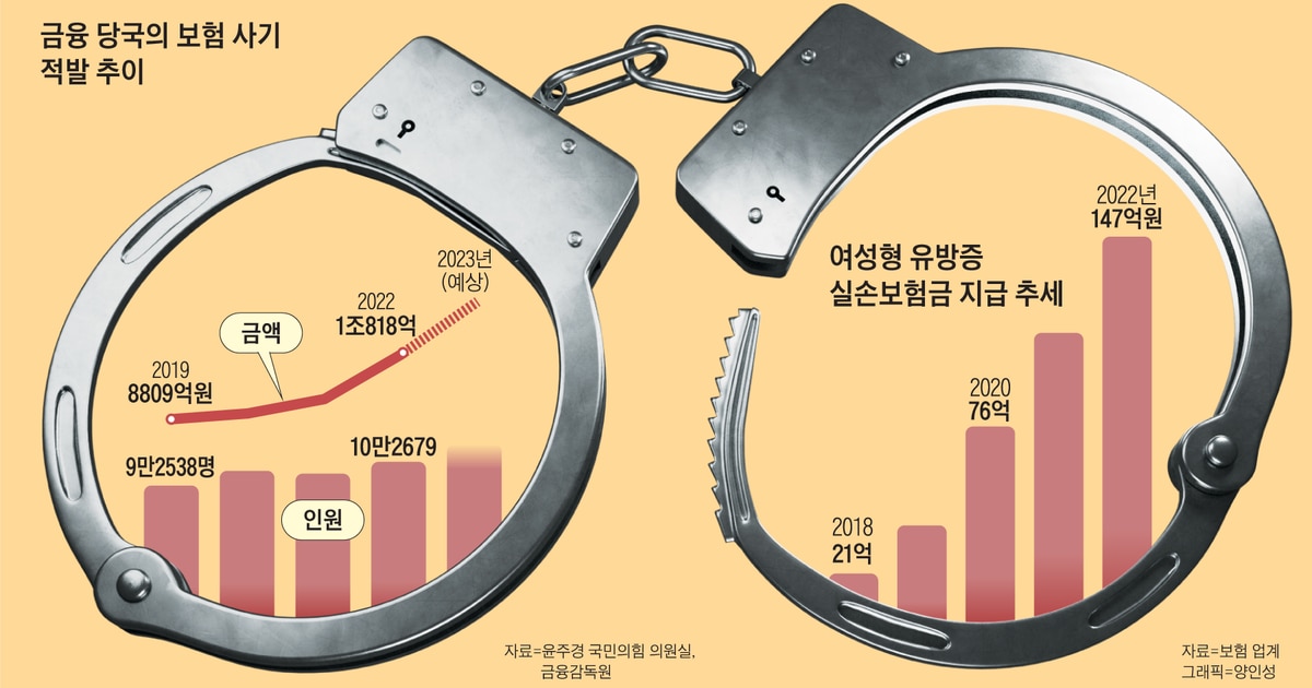 상반기 보험사기 적발액 6000억원, 작년 대비 22%나 증가 최근 남성들이 하지도 않은 여성형 유방증 수술을 받았다고 속이는 등 신종 보험 사기가 극성을 부리는 가운데, 올해 상반기 보험 사기 적발 금액이 6000억원을 넘어 사상 최대를 기록한 것으로 23일 확인됐다. 금융 당국의 감시망에 포착되는 보험 사기…