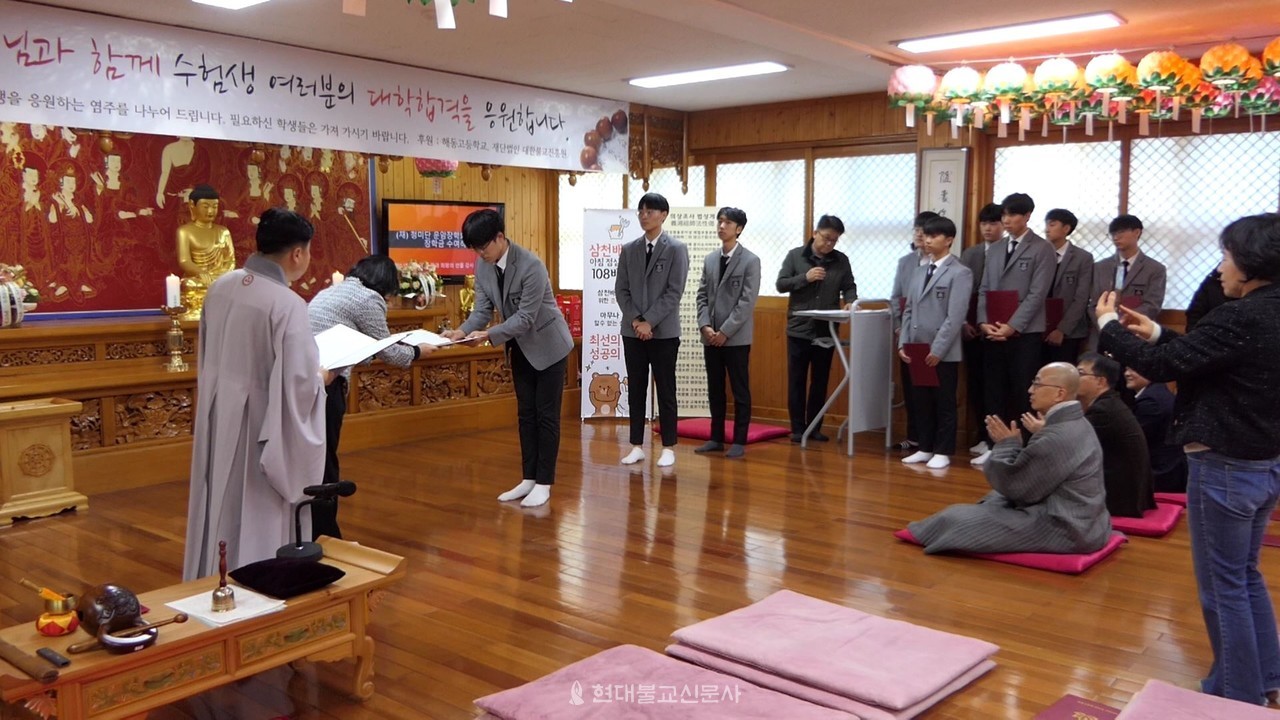 유원규 해동고 교감은 “운암장학회의 참뜻을 알고 베풀고 나누는 마음을 새기는 학생들이 되기를 바란다”며 “학생과 학교의 발전을 위해 후원해주시는 스님들께 진심으로 감사한다”고 인사말을 전했다.